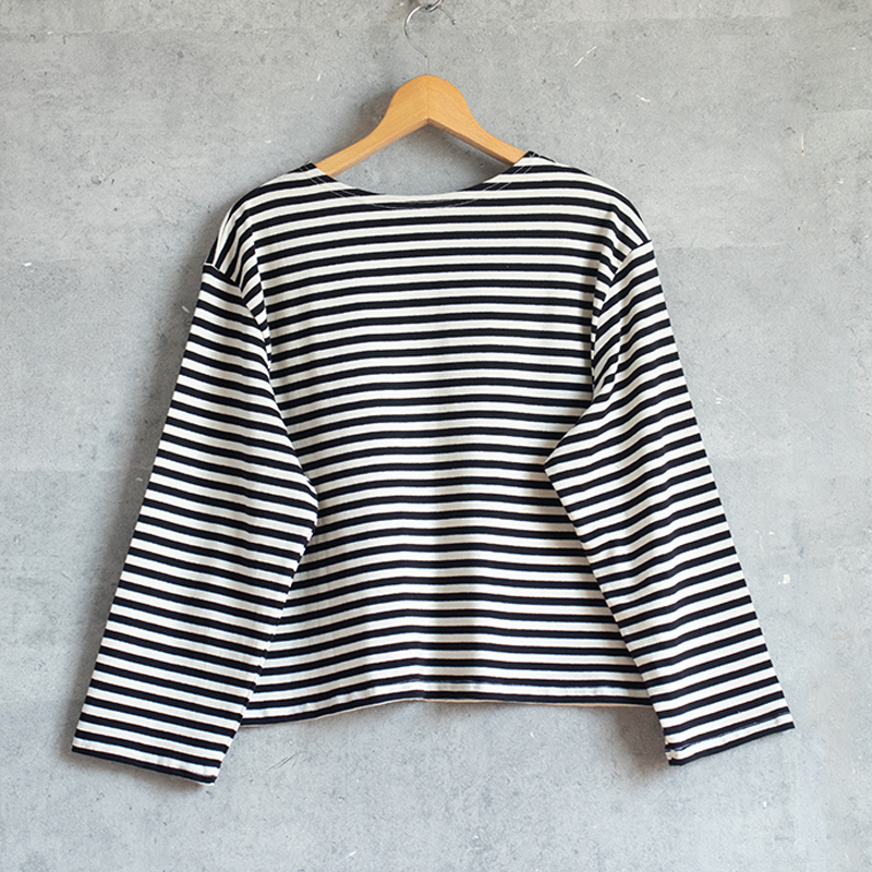 身幅が広めのショート丈で、袖は少し長めに仕上げました。