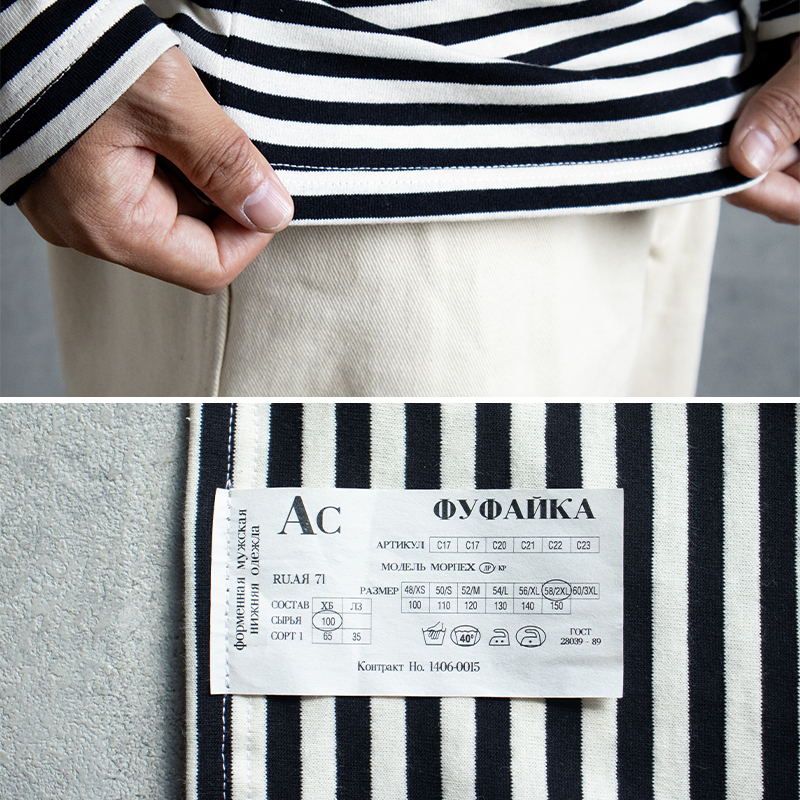 ロシア軍で採用されているボーダーシャツです。「テルニャシュカ」とも呼ばれる事もあります。