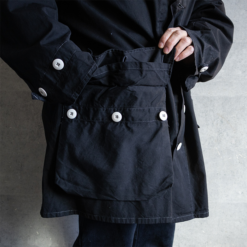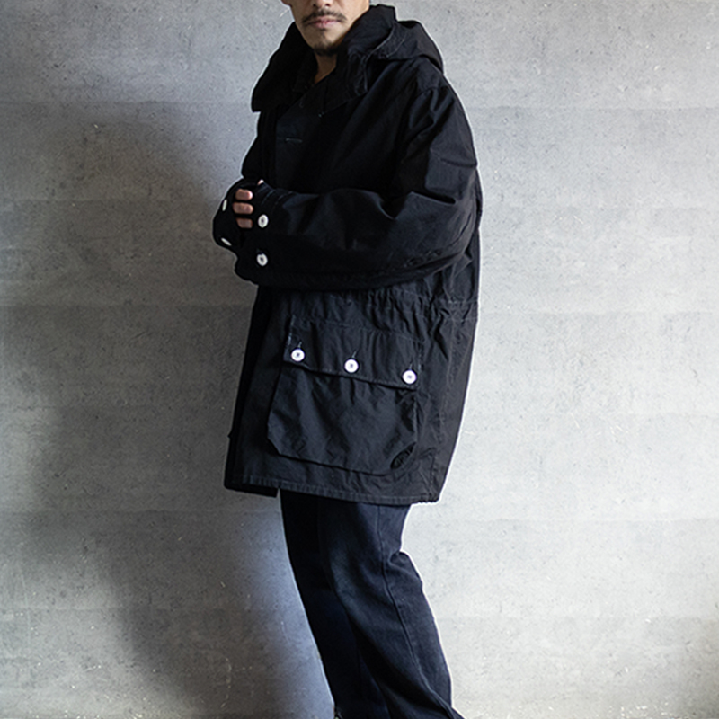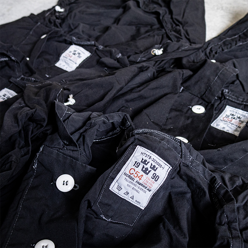 Snojacka(スノーヤッケ)やSnoblus(スノーブラウス)とも呼ばれる、スウェーデン軍実物のM62スノーカモパーカーを黒染めしたアイテムです。