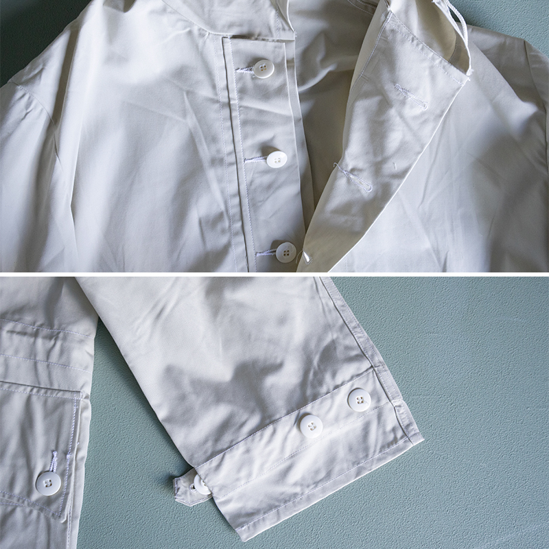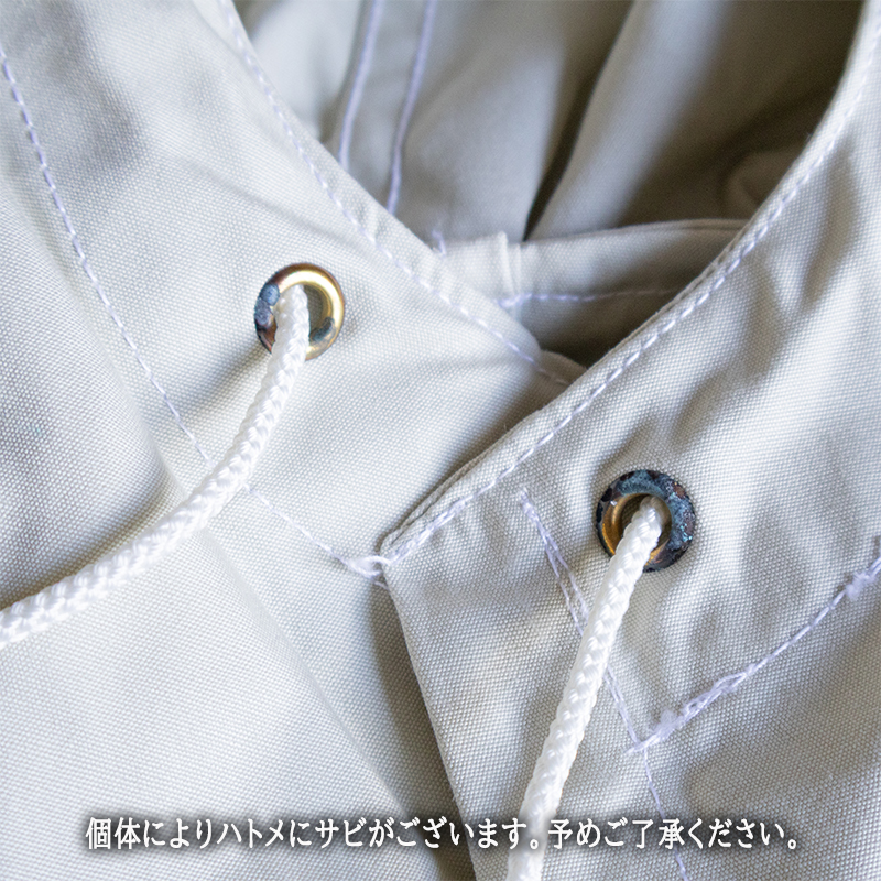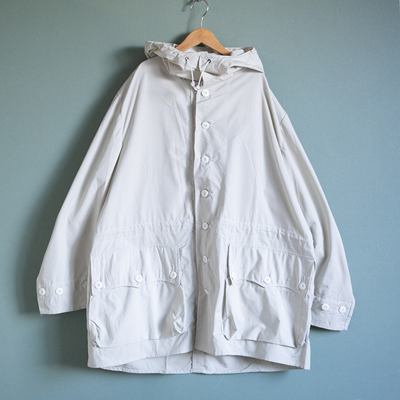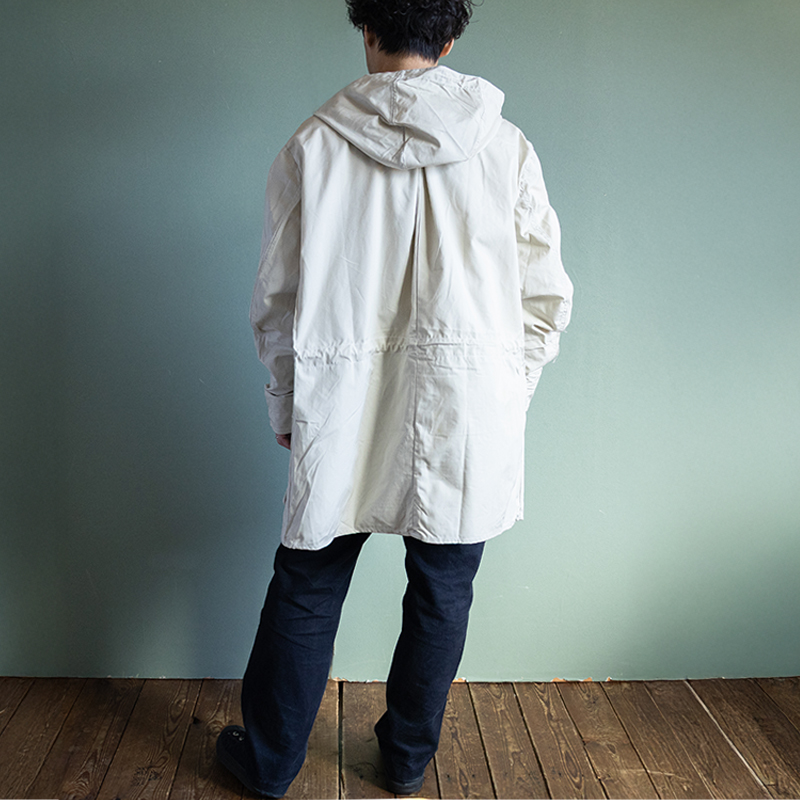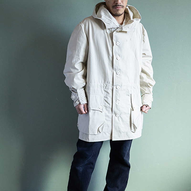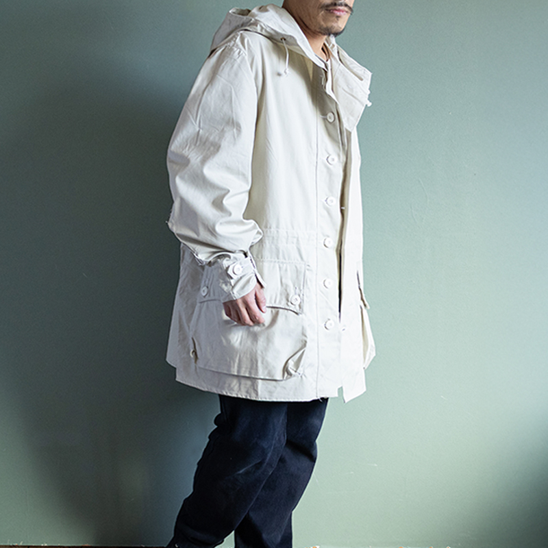 ウエストとフードはコードで、袖はボタンで、それぞれ絞ることができます。
