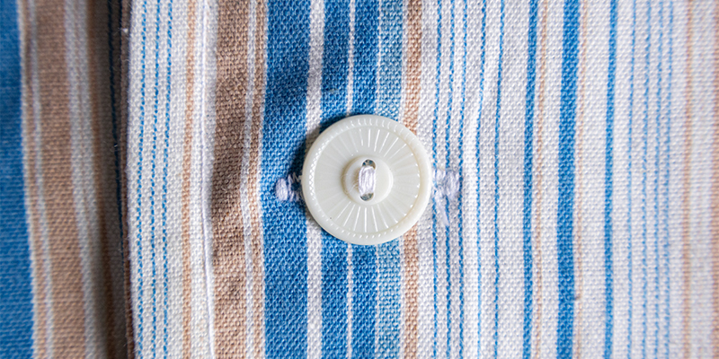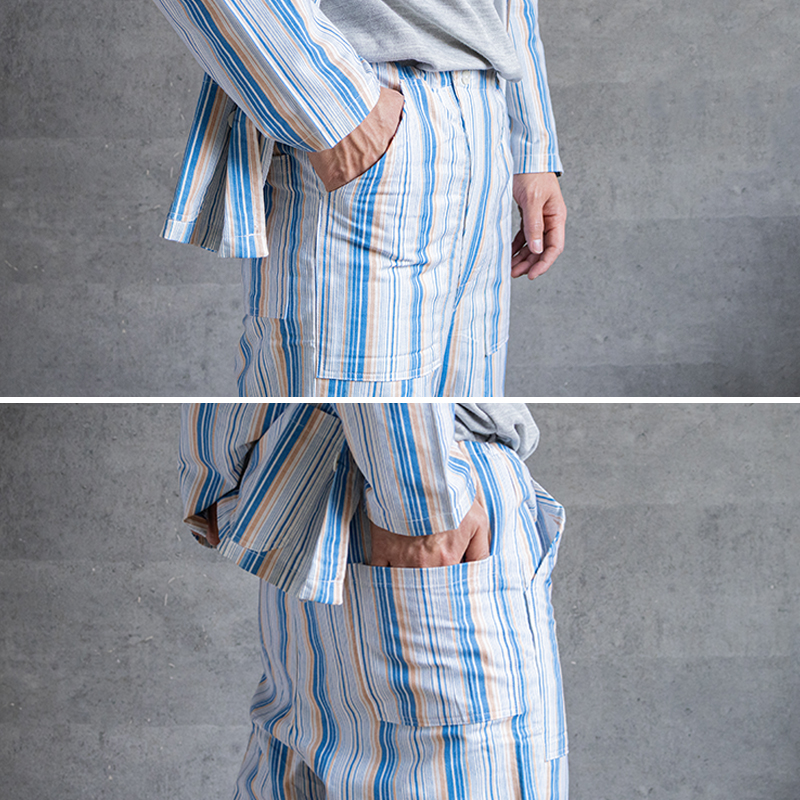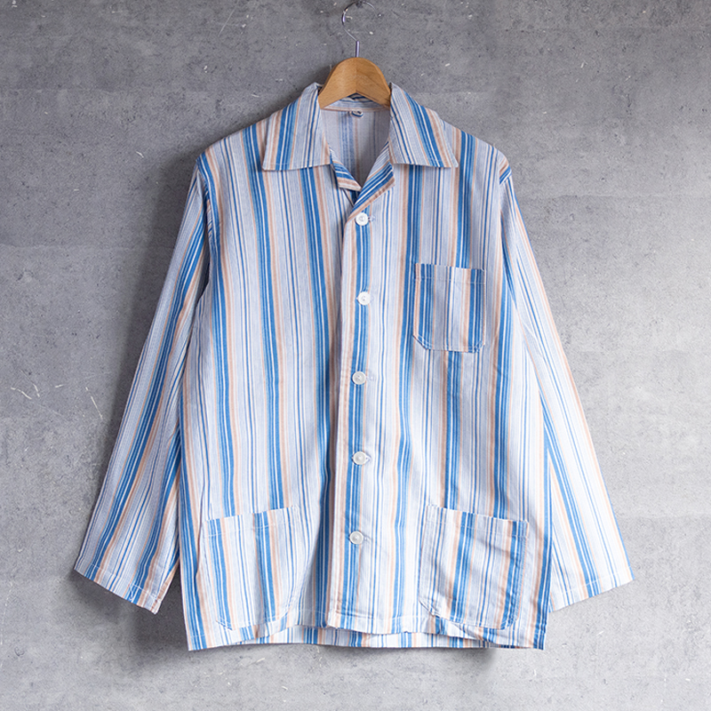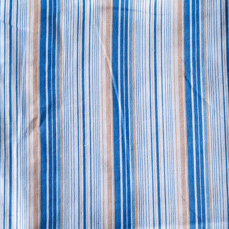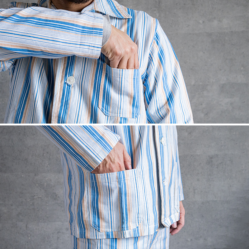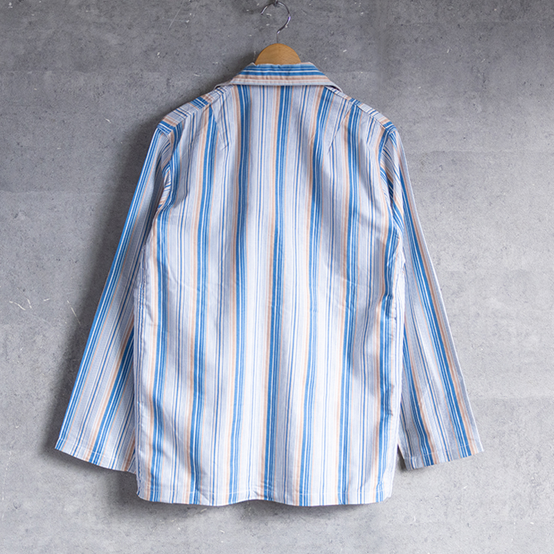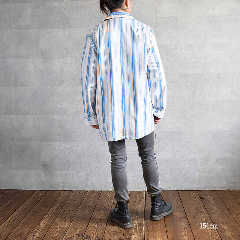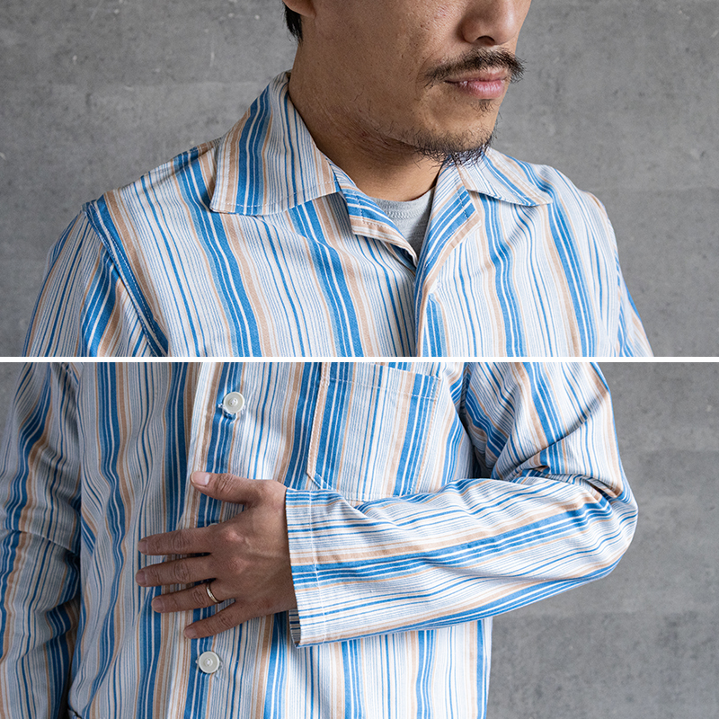 ブルー&ホワイトベースの清涼感のあるストライプ柄で、ややルーズなシルエット。