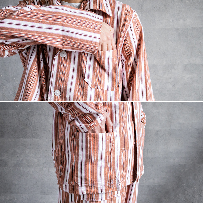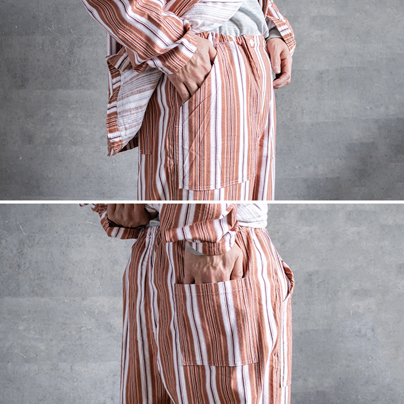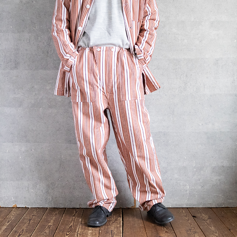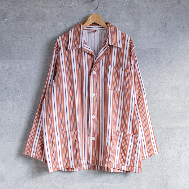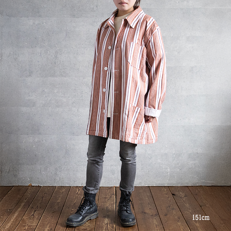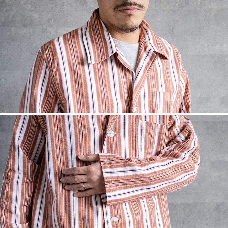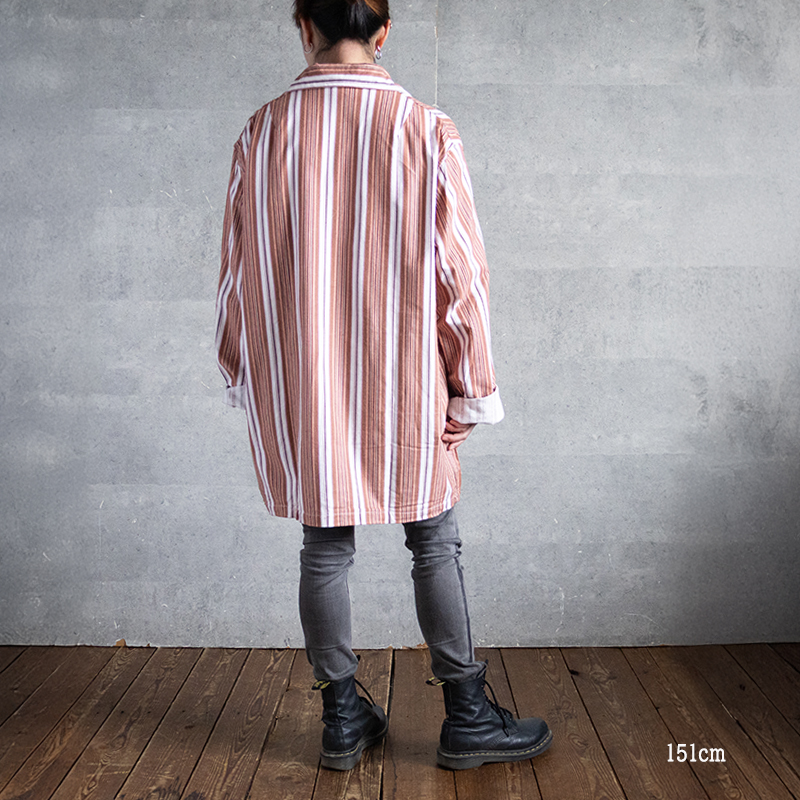 ブラウン×オレンジベースのストライプ柄で、ややルーズなシルエット。