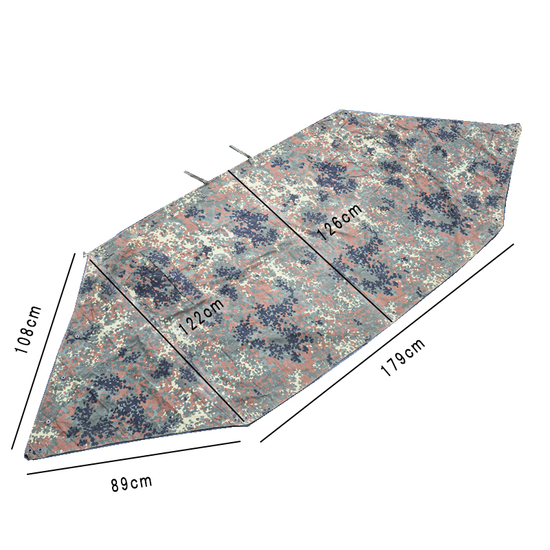 兵士1人に1枚支給されるシートで、1枚では日よけなど簡易的(半分開いた状態)に使用される他、タープやポンチョとしても着用可能。