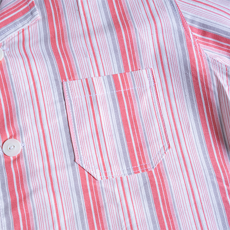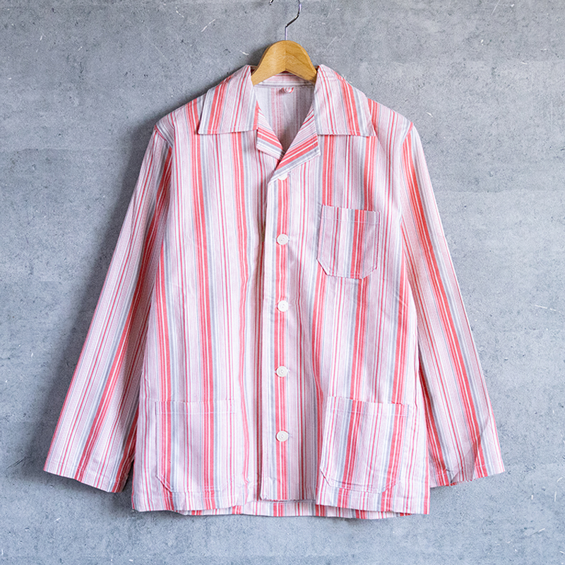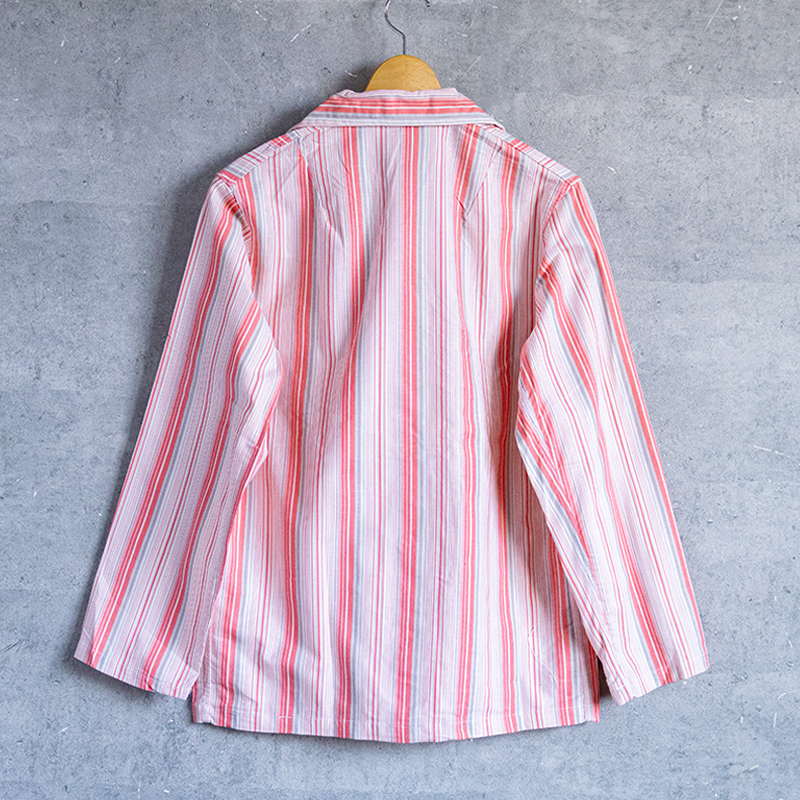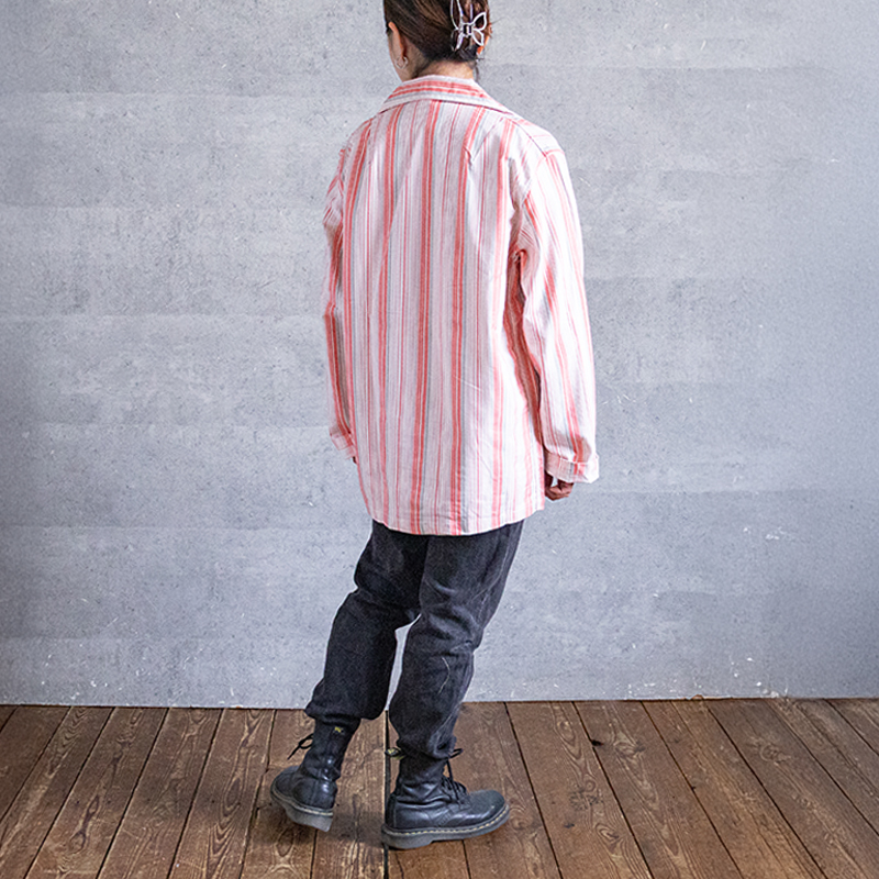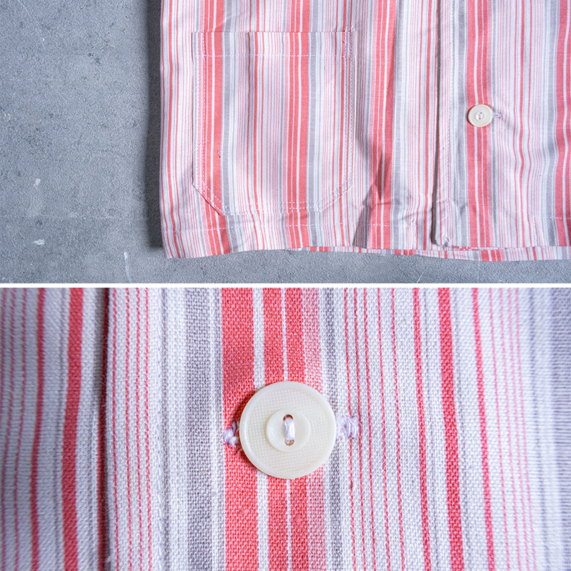 ピンク×グレーベースのストライプ柄で、ややルーズなシルエット。
