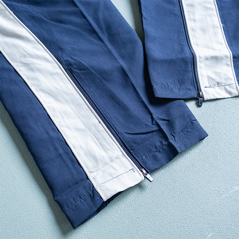 裾周りの裏地のみナイロンに、またジッパー開閉できるようになっており、穿きやすさを向上させています。