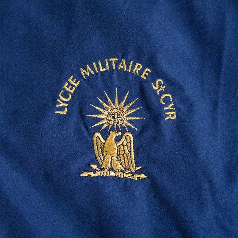 黄金のイーグルと一緒に記された 「LYCÉE MILITAIRE St‑CYR」(フランスの軍事教育機関)の刺繍ワッペンがポイントです。