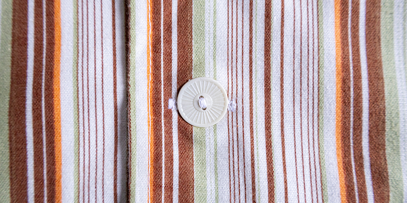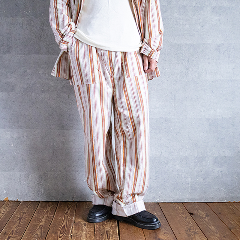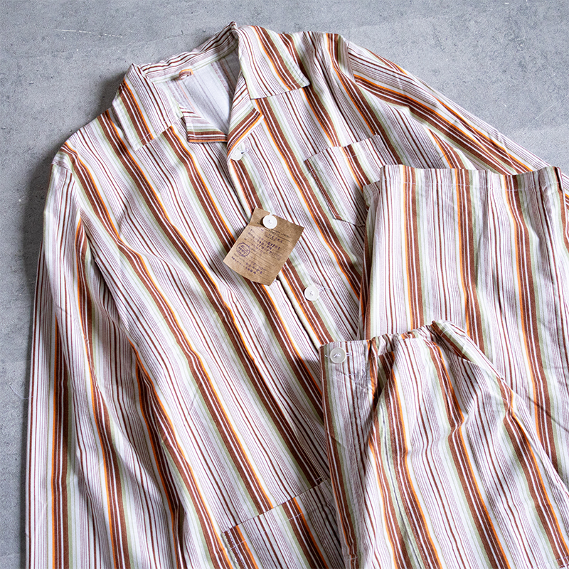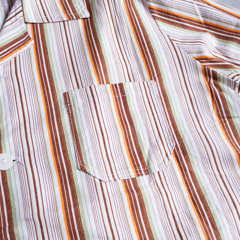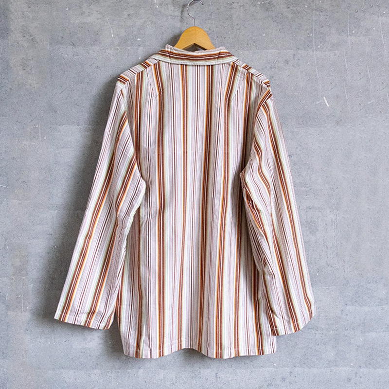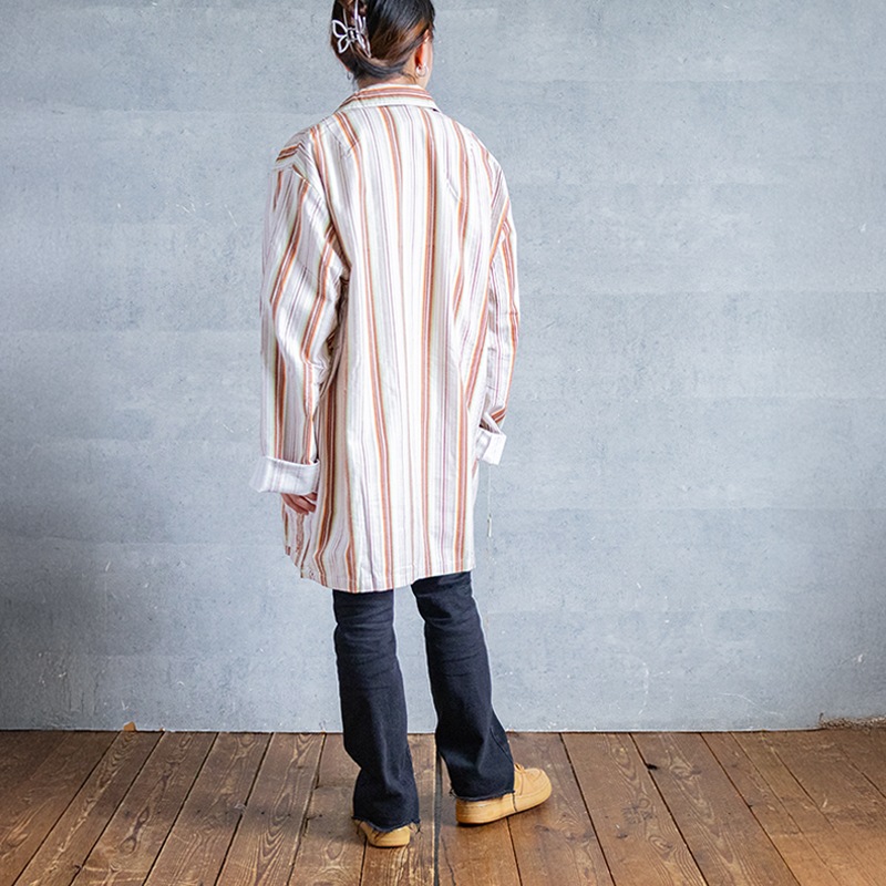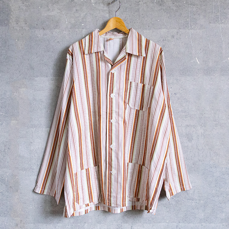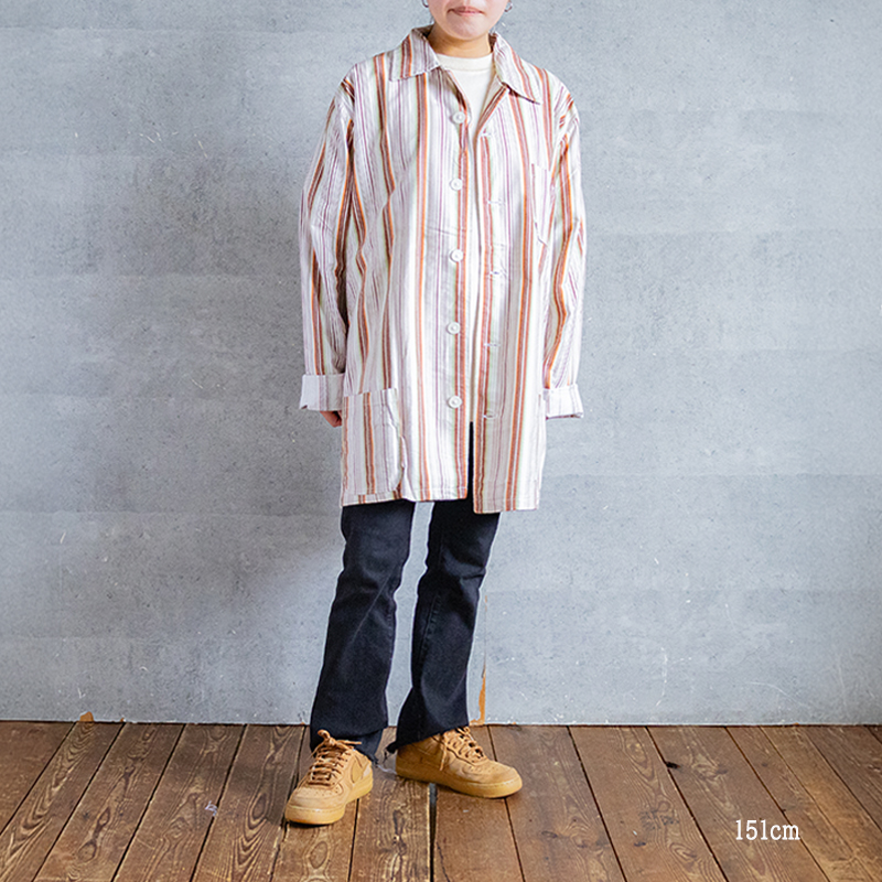 ブラウンベースのストライプ柄で、ややルーズなシルエット。