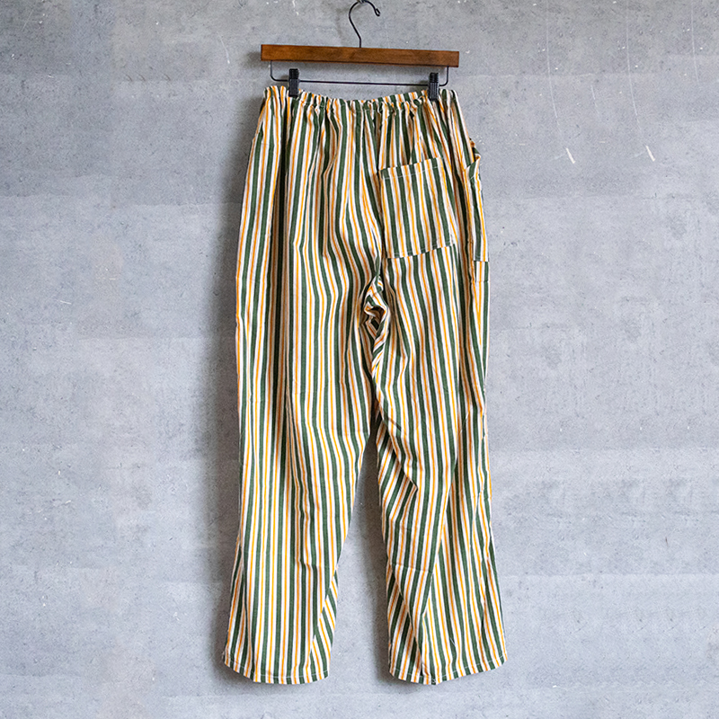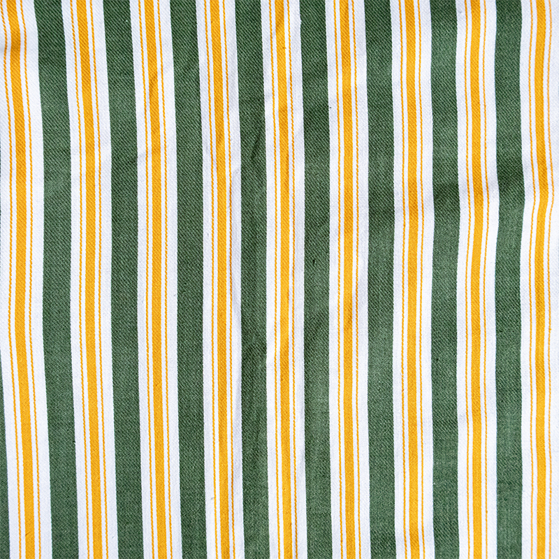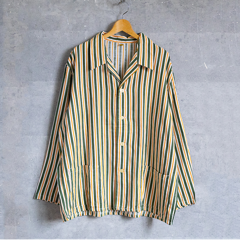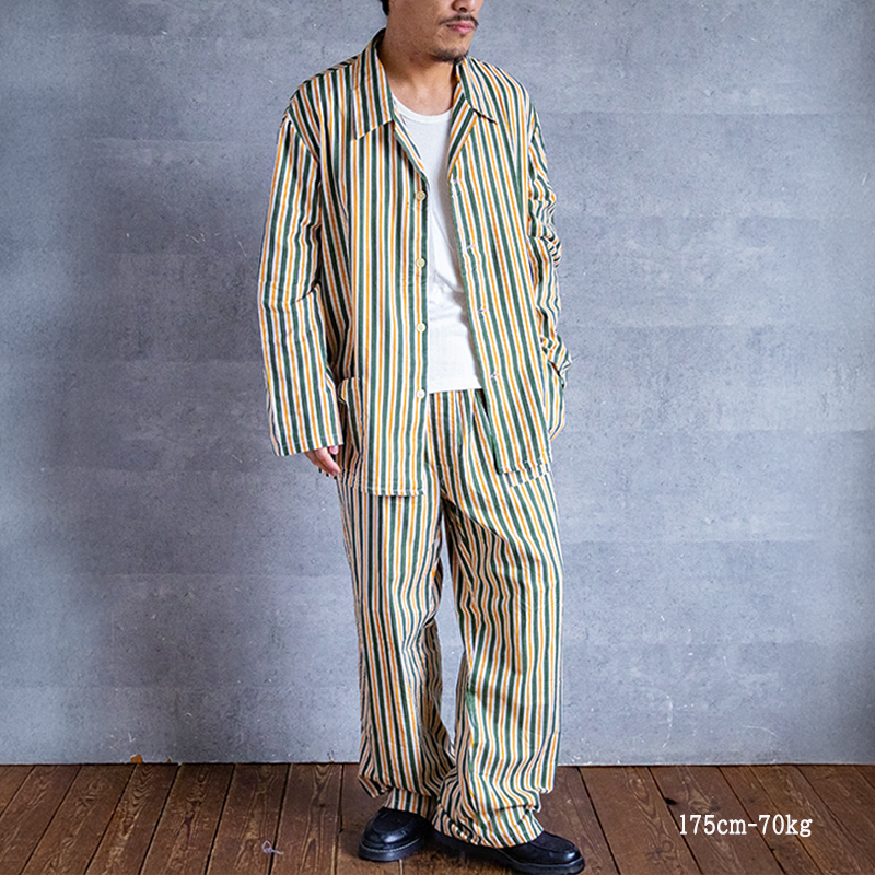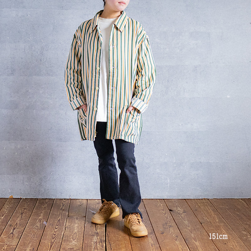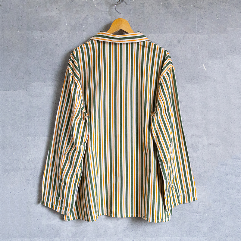 イエロー×グリーンベースのストライプ柄で、ややルーズなシルエット。