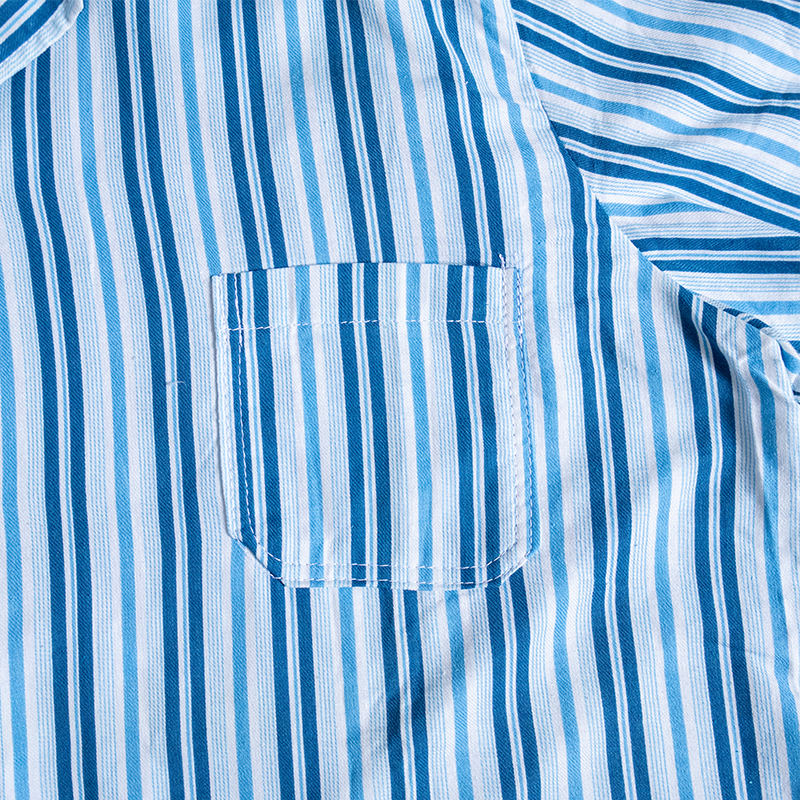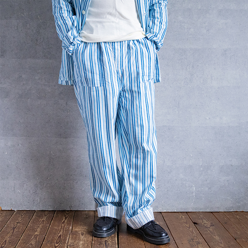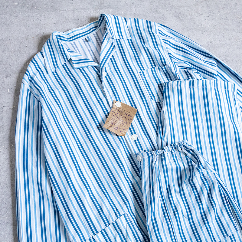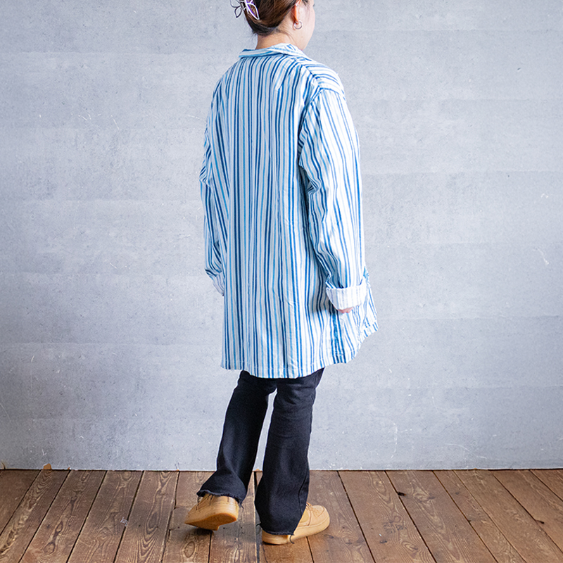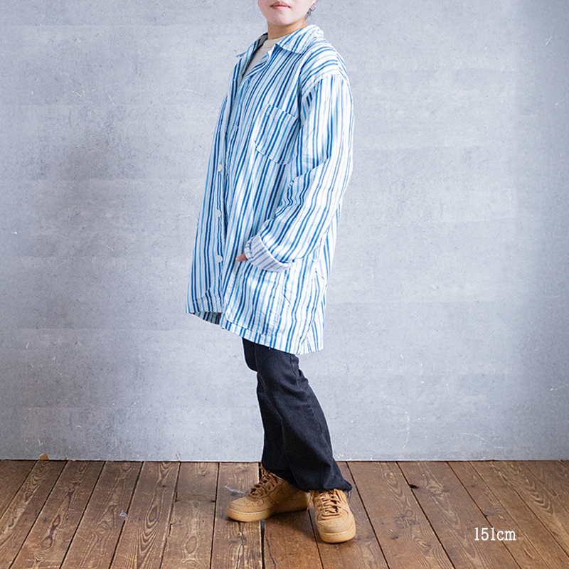 ブルーベースのストライプ柄で、ややルーズなシルエット。