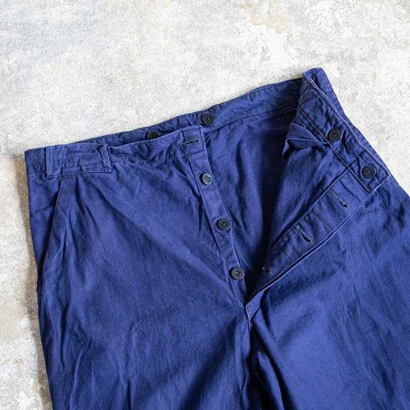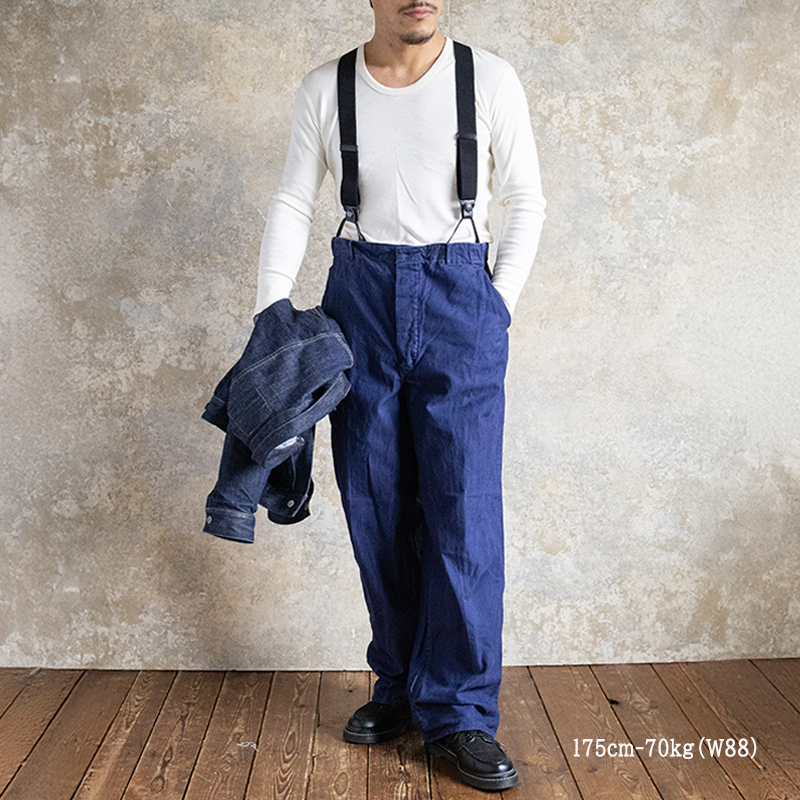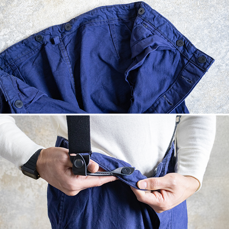 フロントはボタンフライ、ポケットが左右に2つ、内側にはサスペンダーボタンが付いています。