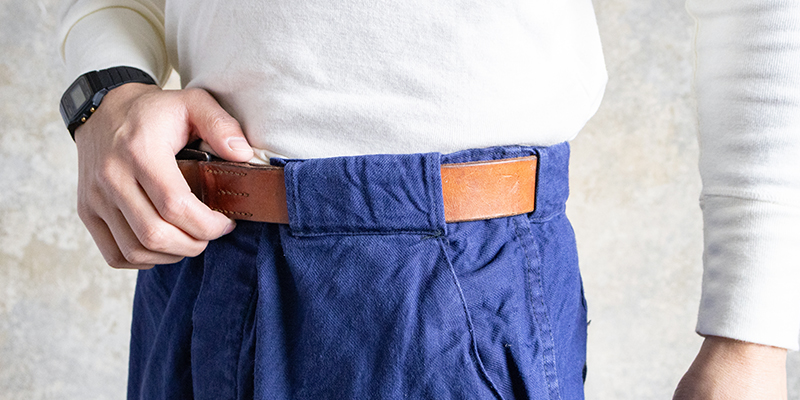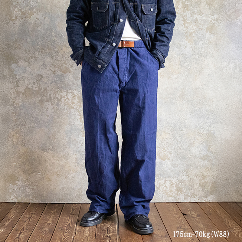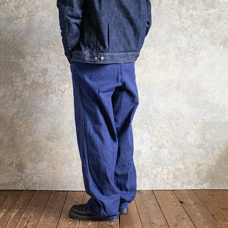 素材はコットンツイルで経年変化によるワークウェアらしい素朴な風合いをお楽しみ頂けます。