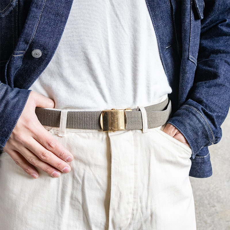 シンプルなデザインのキャンバスベルト。カジュアルな装いにマッチします。