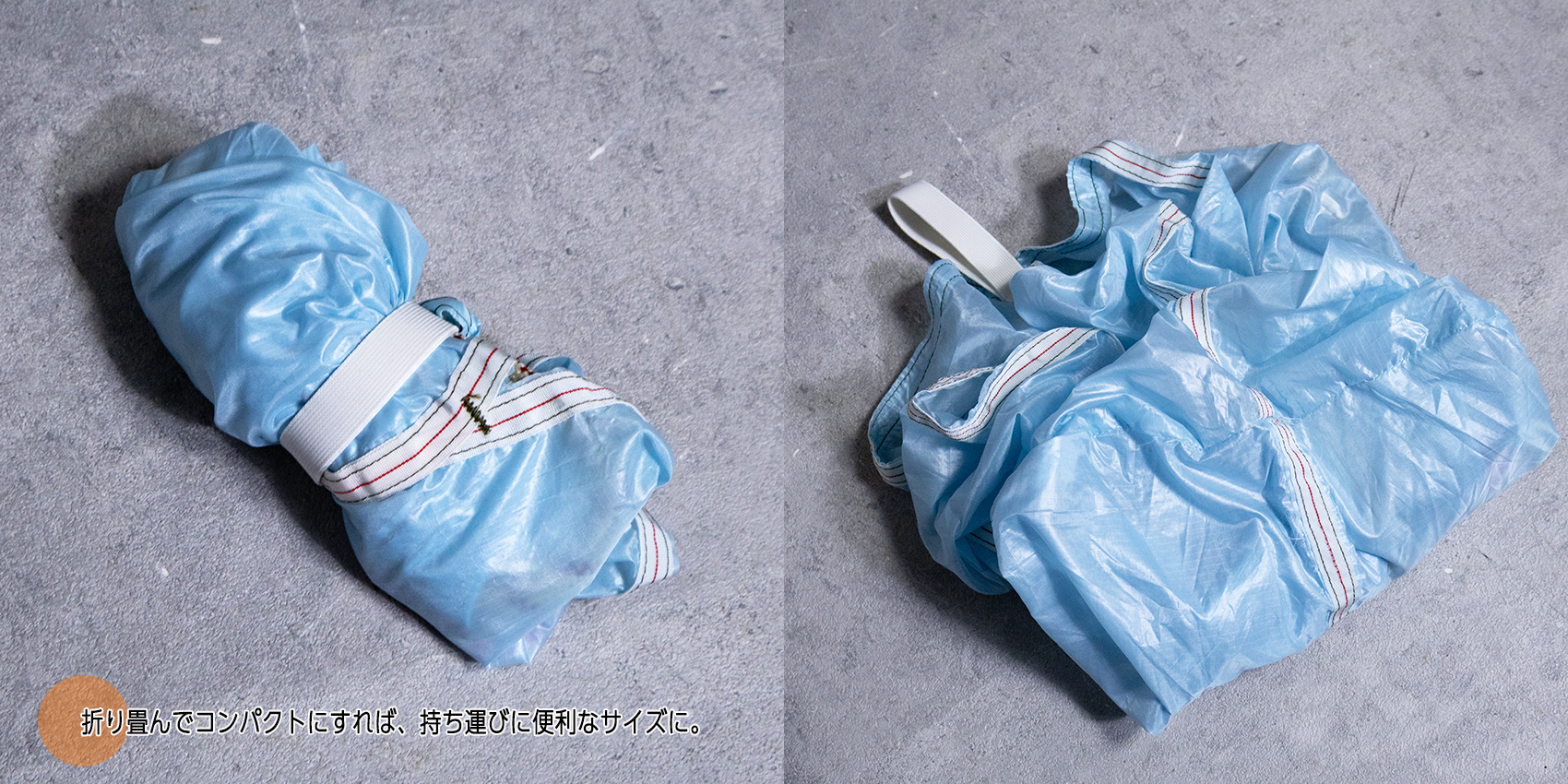 薄手でありながら丈夫なパラシュート生地、コンパクトにまとめる事が出来てサブバッグにも最適です。