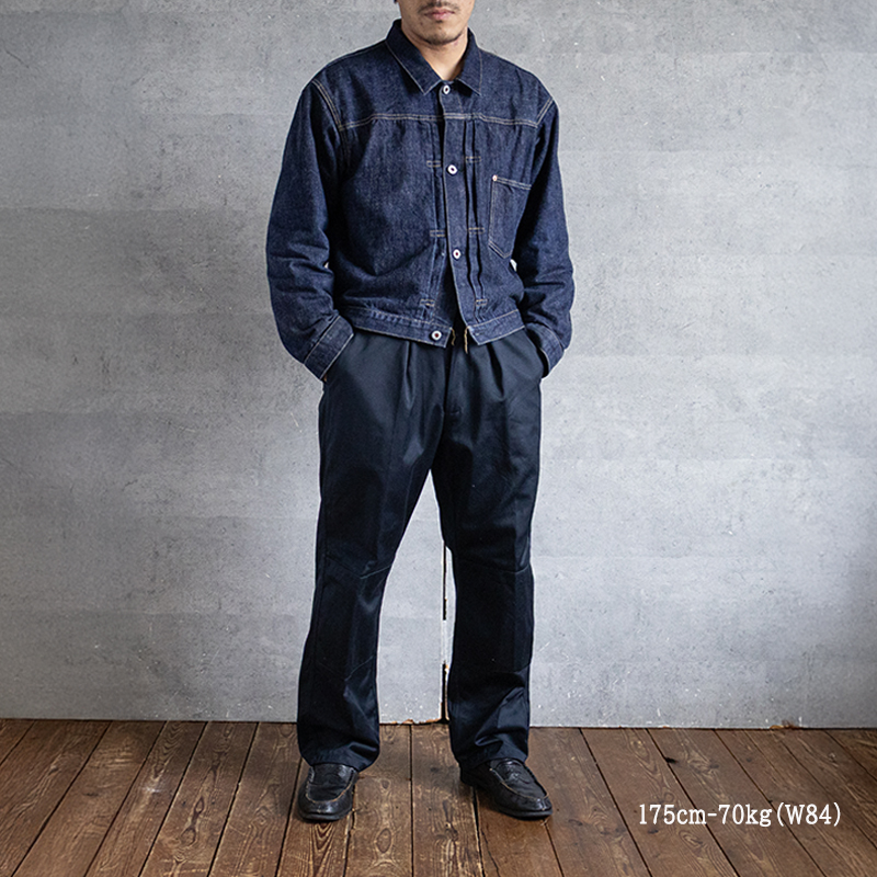 スッキリとしたシルエットである為、どこか上品さも兼ね備えたコーディネートの幅がある万能なパンツです。