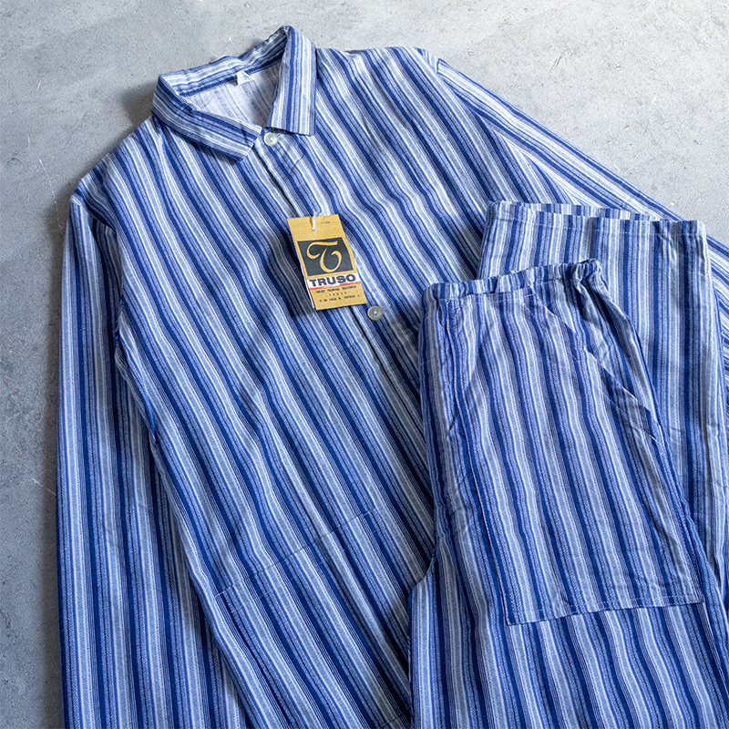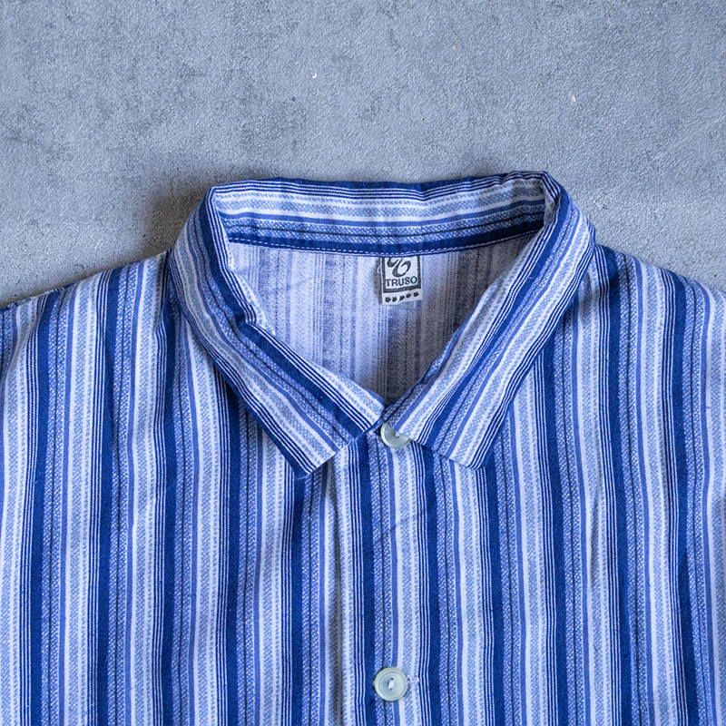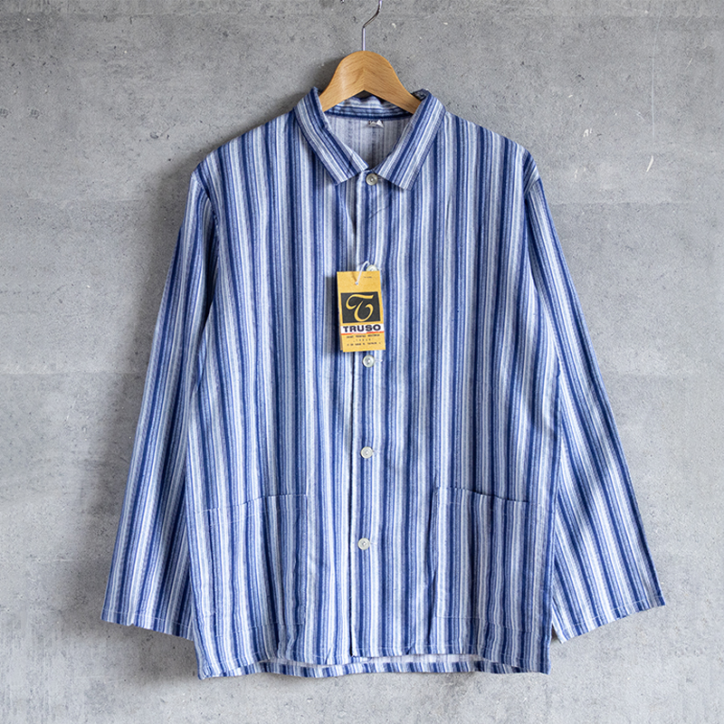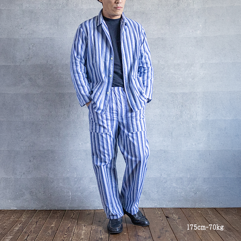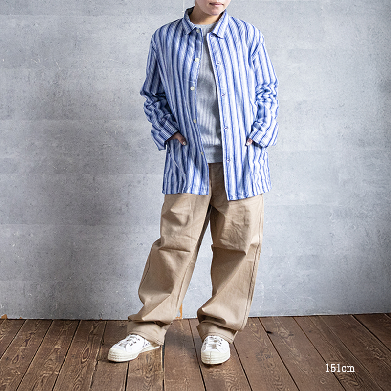ブルーベースのストライプ柄で、ややルーズなシルエット。