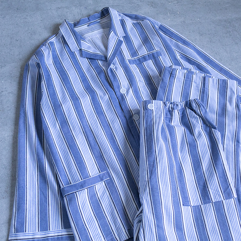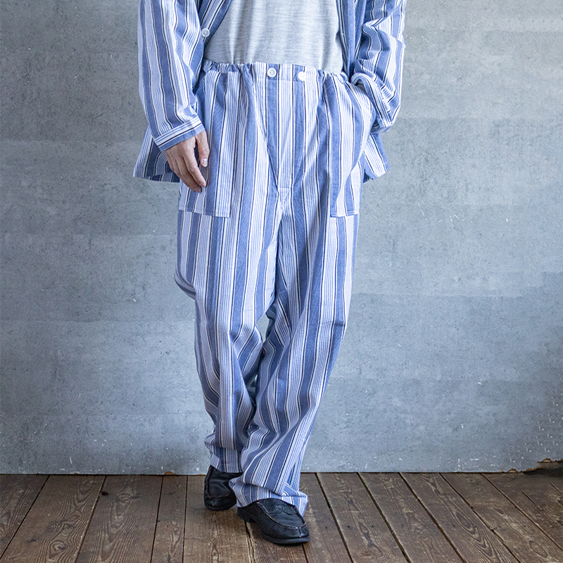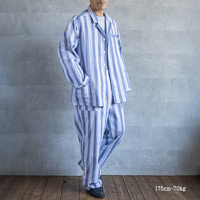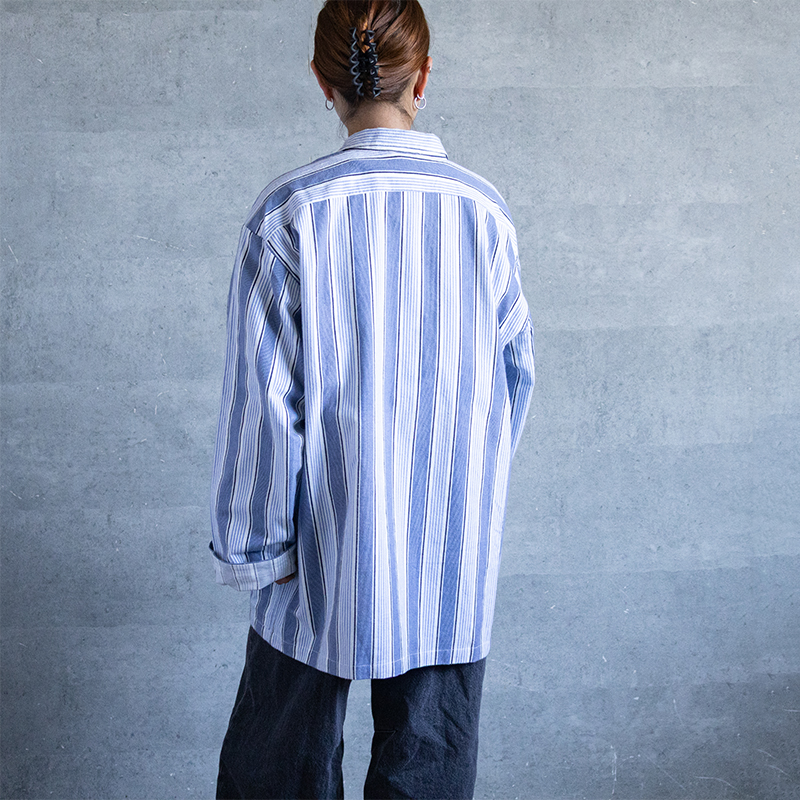 ブルーベースのストライプ柄で、ややルーズなシルエット。