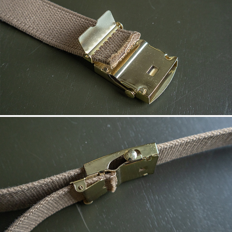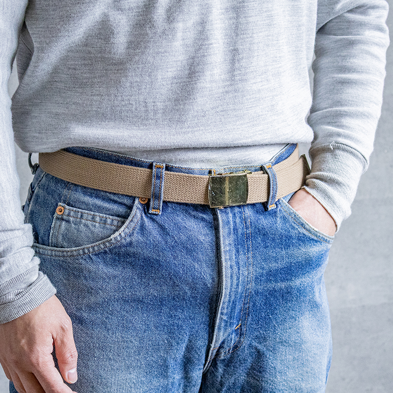 キャンバス地のベルトは厚みがあり、しっかりとした生地感です。